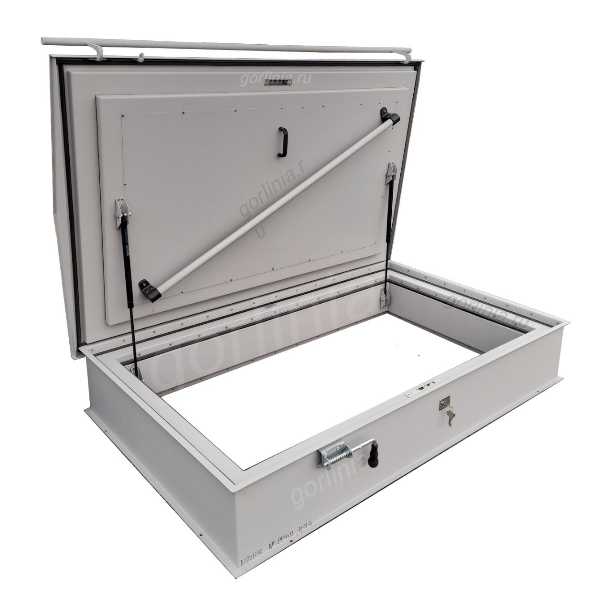 - Откидные дверцы двухскатной и арочной форм рассчитаны под естественный отвод с поверхности осадков и наростов льда, лишены дополнительной снеговой нагрузки при толкании механизма снизу.
