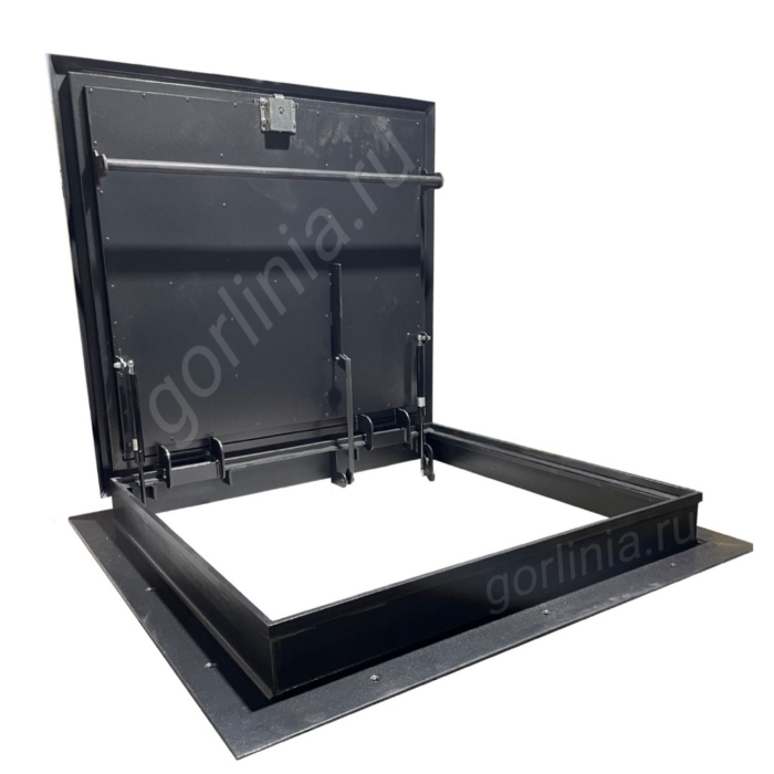 Откидная крышка закрыта сверху гладким стальным листом с загнутыми краями с вылетом 30 мм за периметр короба. Внутрь каркаса полотна между ребрами обвязки проложен рулонный минеральный утеплитель 50 мм, прикрытый снизу листом 1 мм.