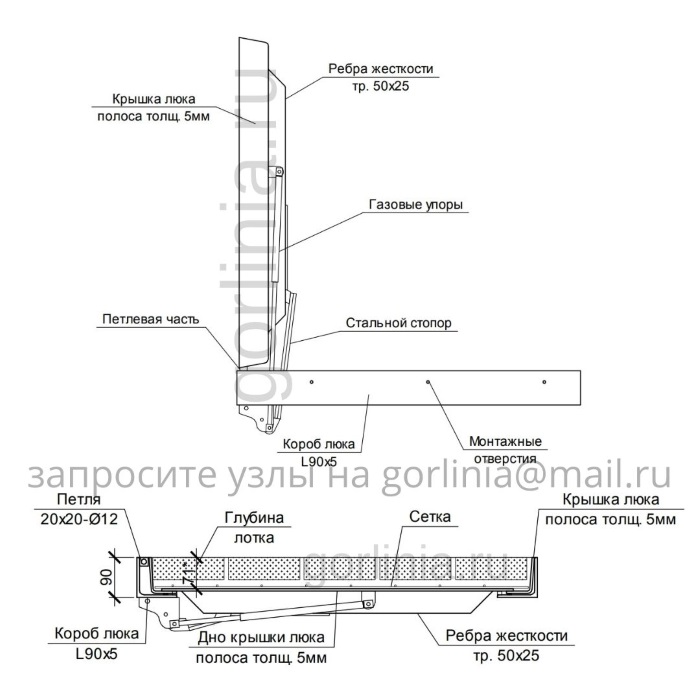 Корпус сварен из углового профиля горячего проката с толщиной стенки 5 мм; корыто - из листового проката 3 мм усилено снизу профильной трубой. Сварка аргонно-дуговая. Характер шва: сплошной с присадками меди.